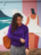 The MONA tote bag is knitted from the bottom up. First The base of the bag is worked back and forth, then stitches are picked up and worked along the sides to knit the body of the bag in the round. Once the desired length is reached, the stitches are divided to knit the handles separately, back and forth. Once both handles are finished, they are joined with a three-needle bind-off. Finally, a lining is sewn and attached to the inside edge of the bag.